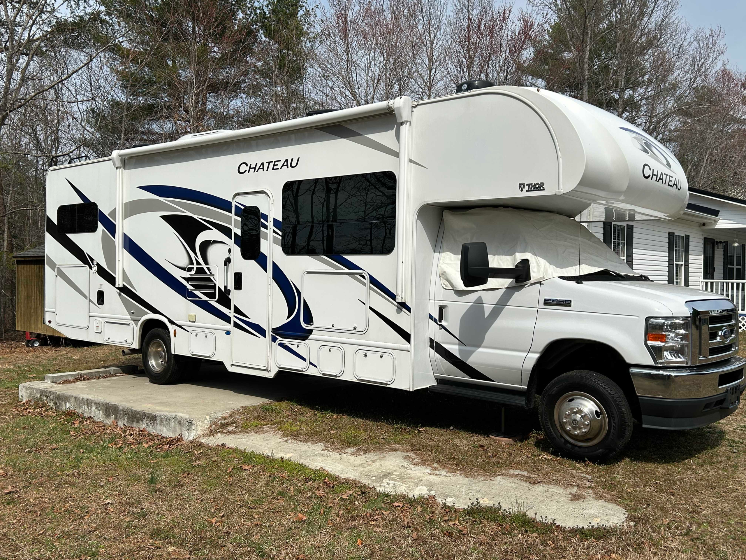 That’s when a new idea began to form. For about the cost of a truck, we could buy a Class C motorhome. The more we thought about it, the more it made sense. A motorhome would give us living space while driving, and Boo could travel with us comfortably with the AC running off the generator. It was the perfect solution.